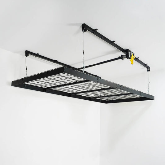 Maximize your garage space with the SafeRacks Overhead Garage Storage Rack. Designed to handle heavy loads, this storage solution is perfect for homeowners and DIY enthusiasts alike. SafeRacks mounted racks ensure your items are stored safely and securely to help you elevate your garage's storage potential.