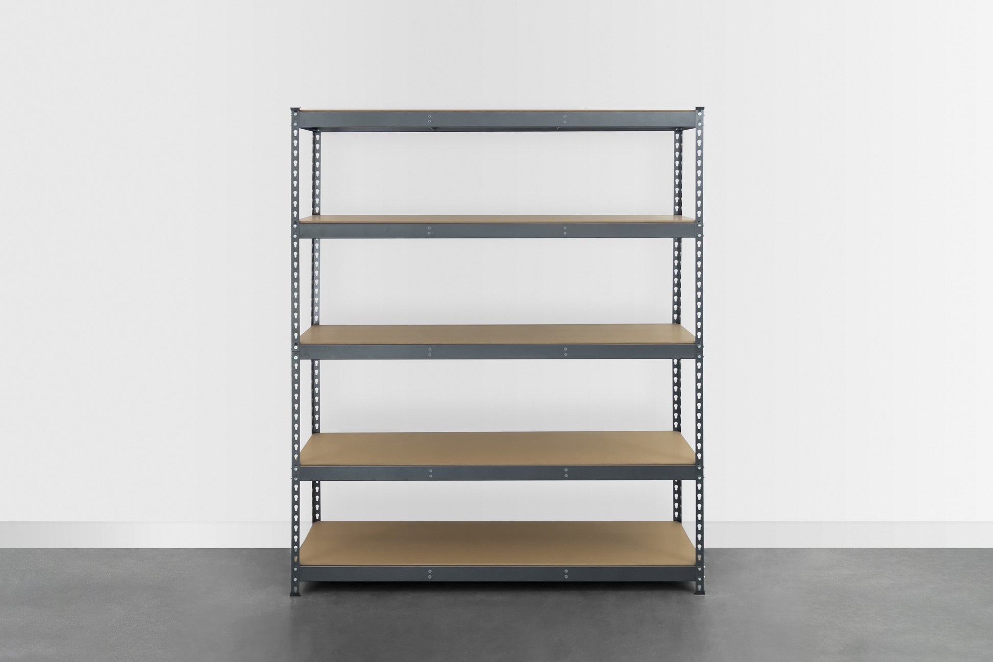 Achieve your storage goals with our shelving unit, designed with customizable heights for perfect organization of tools, equipment, and household items.