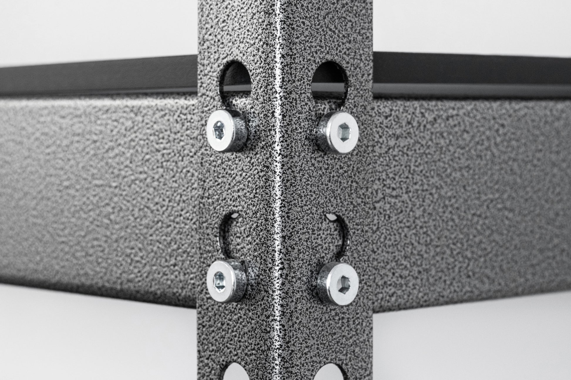 Achieve your storage goals with our shelving unit, designed with customizable heights for perfect organization of tools, equipment, and household items.