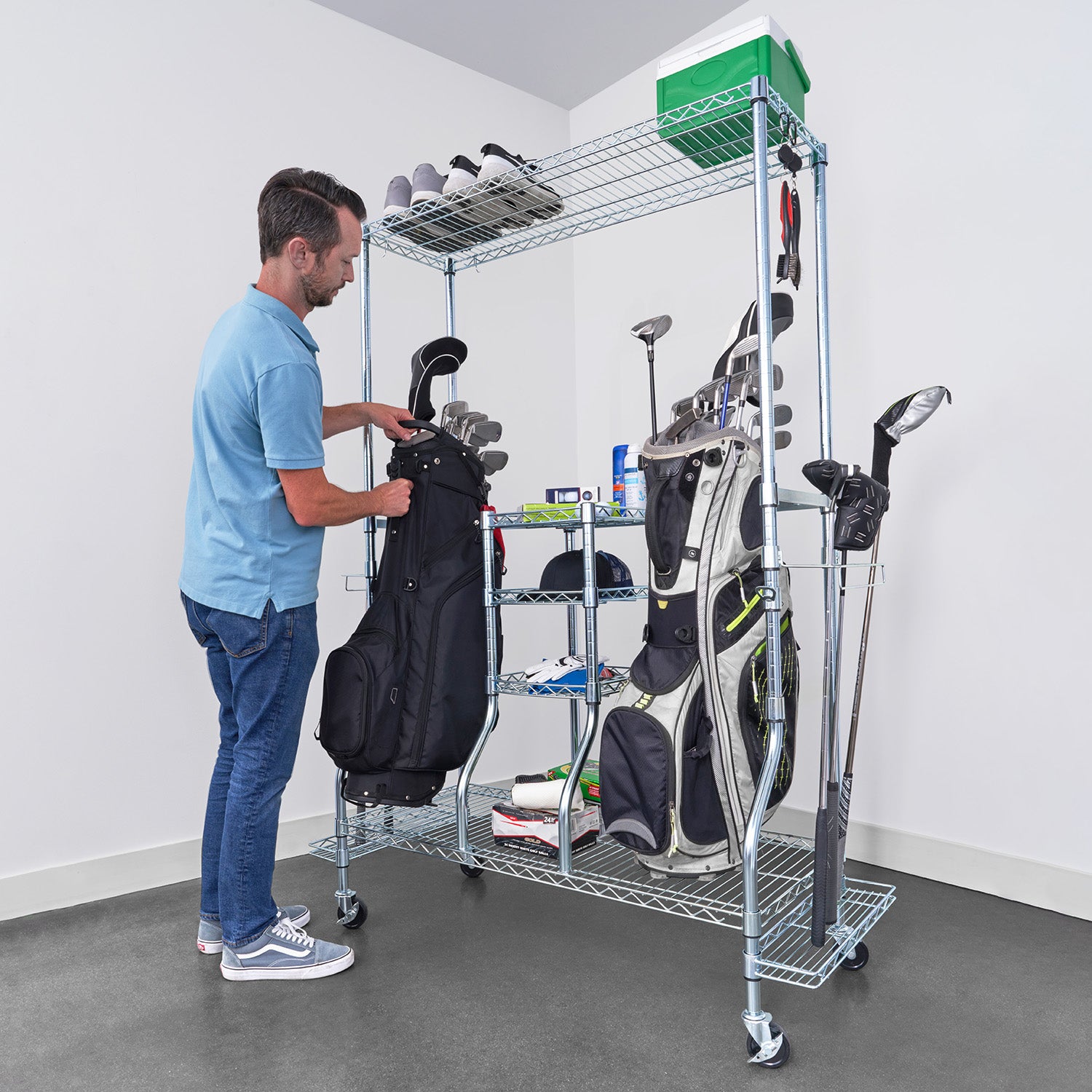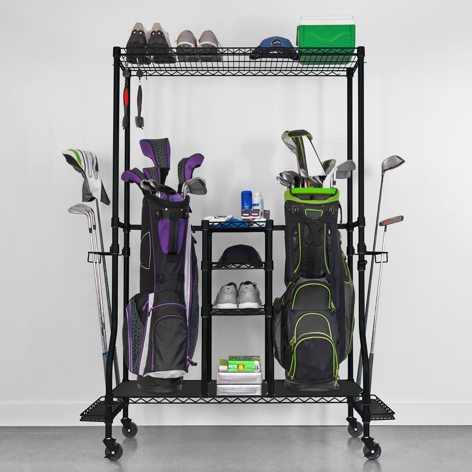 With dedicated slots and hooks, it keeps your bags, clubs, shoes, and accessories neatly organized for a clutter-free storage solution.